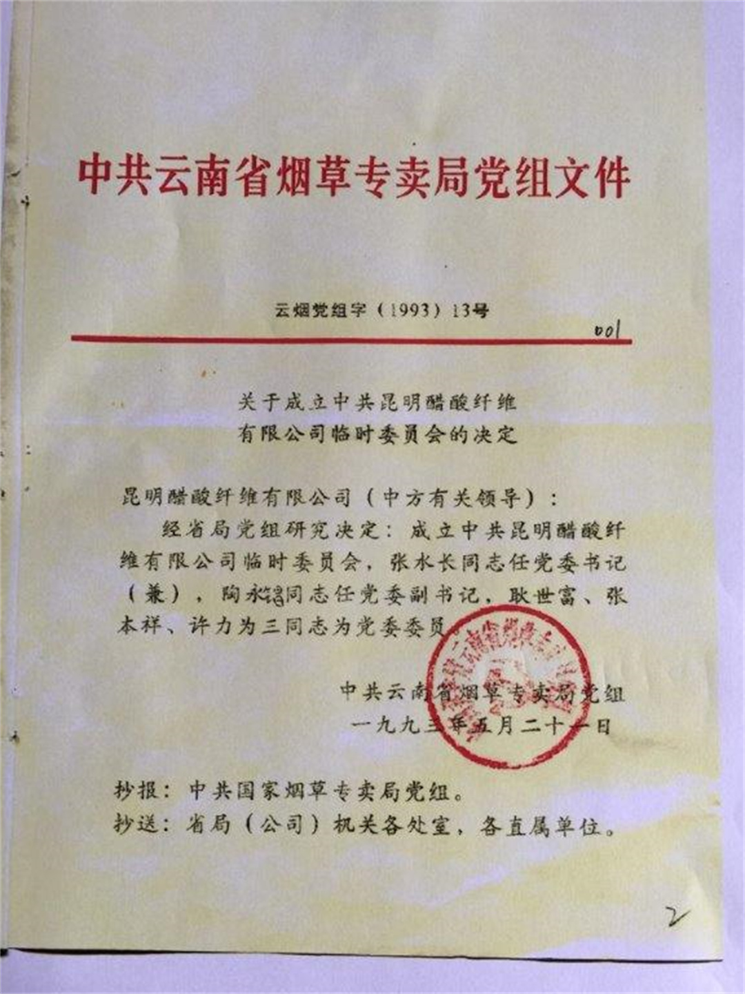1993年5月21日,昆明醋酸纖維有限公司黨委(以下簡(jiǎn)稱“昆纖公司黨委”)與公司同步成立。當(dāng)前,公司黨委共下設(shè)基層黨支部4個(gè),黨員100余名,黨員人數(shù)占公司總?cè)藬?shù)30%。其中,中高層黨員占比83%,黨員隊(duì)伍已成為公司發(fā)展的中堅(jiān)力量。