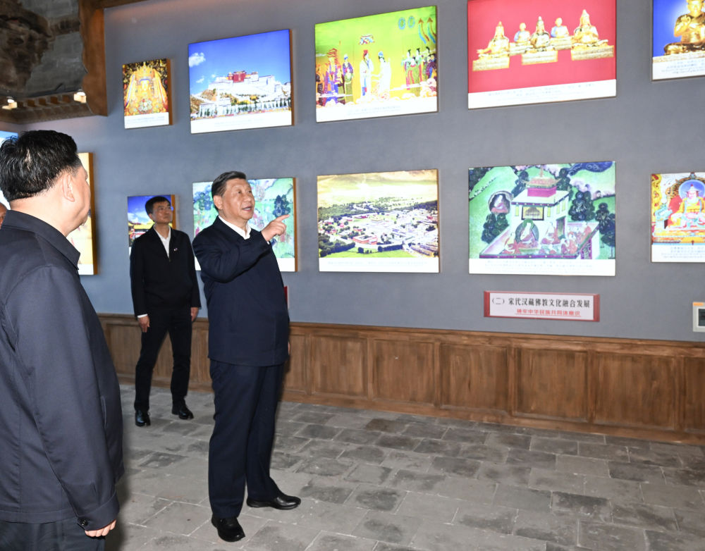 6月18日至19日,中共中央總書(shū)記、國(guó)家主席、中央軍委主席習(xí)近平在青??疾?。這是18日下午,習(xí)近平在位于西寧市城中區(qū)的宏覺(jué)寺考察。 新華社記者 謝環(huán)馳 攝