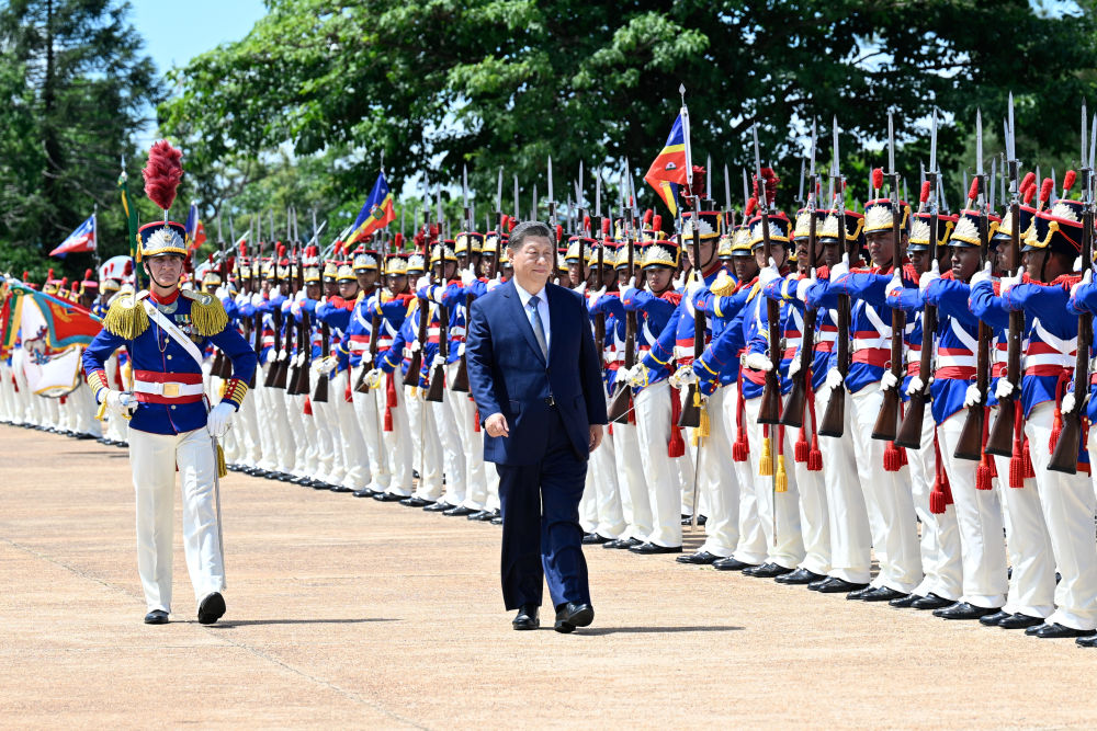 習(xí)近平指出,很高興在中巴建交50周年這個具有重要歷史意義的年份訪問巴西。剛才盧拉總統(tǒng)為我舉行最高禮遇的隆重歡迎儀式,充分體現(xiàn)了對中巴關(guān)系的高度重視以及對中國人民的深情厚誼,令我深受感動。中國和巴西是東西半球兩大發(fā)展中國家?;厥走^去50年,中巴關(guān)系跨越山海,探索出發(fā)展中大國相互尊重、互利友好、合作共贏的正確相處之道。巴西是首個同中國建立戰(zhàn)略伙伴關(guān)系的國家、首個同中國建立全面戰(zhàn)略伙伴關(guān)系的拉美國家。近年來,在我和盧拉總統(tǒng)戰(zhàn)略引領(lǐng)下,兩國日益成為命運與共的可靠朋友、共促和平的積極力量,中巴關(guān)系正處于歷史最好時期,不僅增進了兩國人民福祉,也維護了廣大發(fā)展中國家共同利益,壯大了全球南方的力量和聲音,為世界和平穩(wěn)定作出突出貢獻。