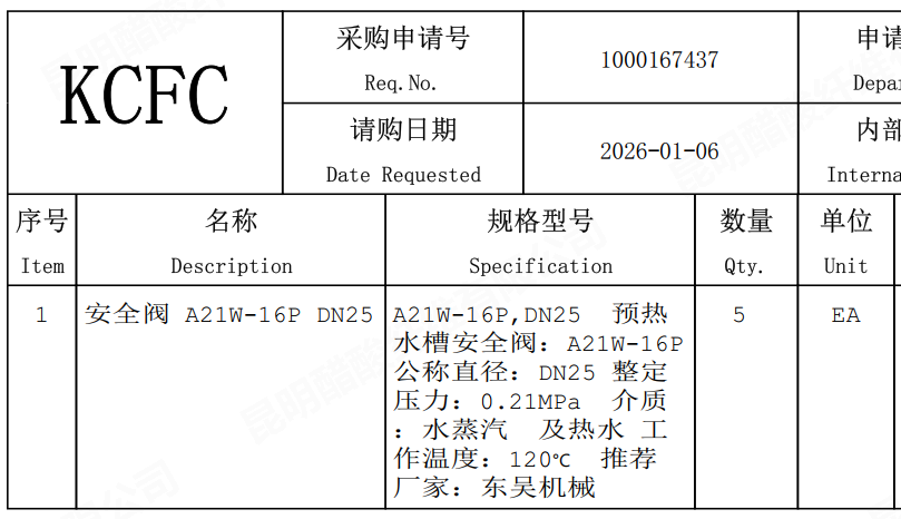 昆明醋酸纖維有限公司安全閥 A21W-16P DN25詢比采購(gòu)公告